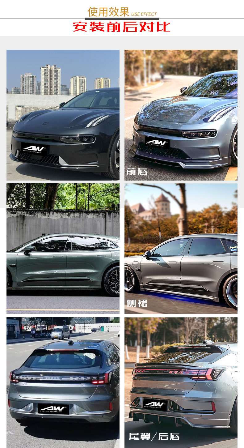 极氪001 ZEEKR 改装套件24-25款 前唇 尾翼 侧裙 后唇