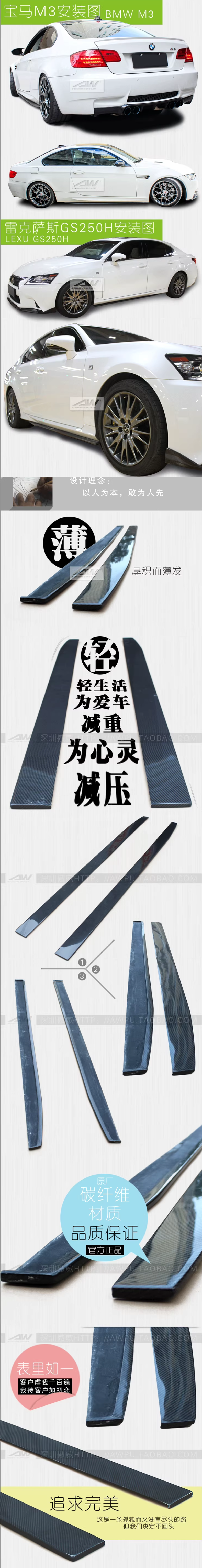改装侧裙 骄车通用型侧裙汽车包围AW碳纤侧裙 改装碳纤维侧裙侧板