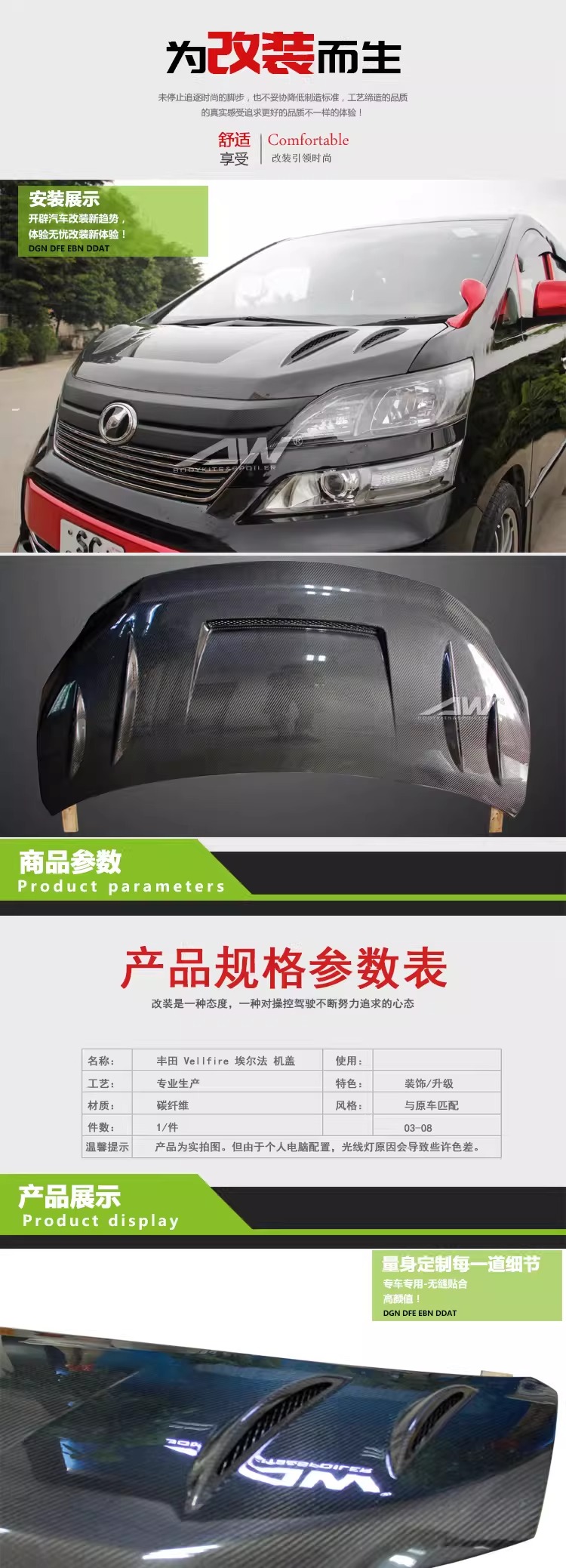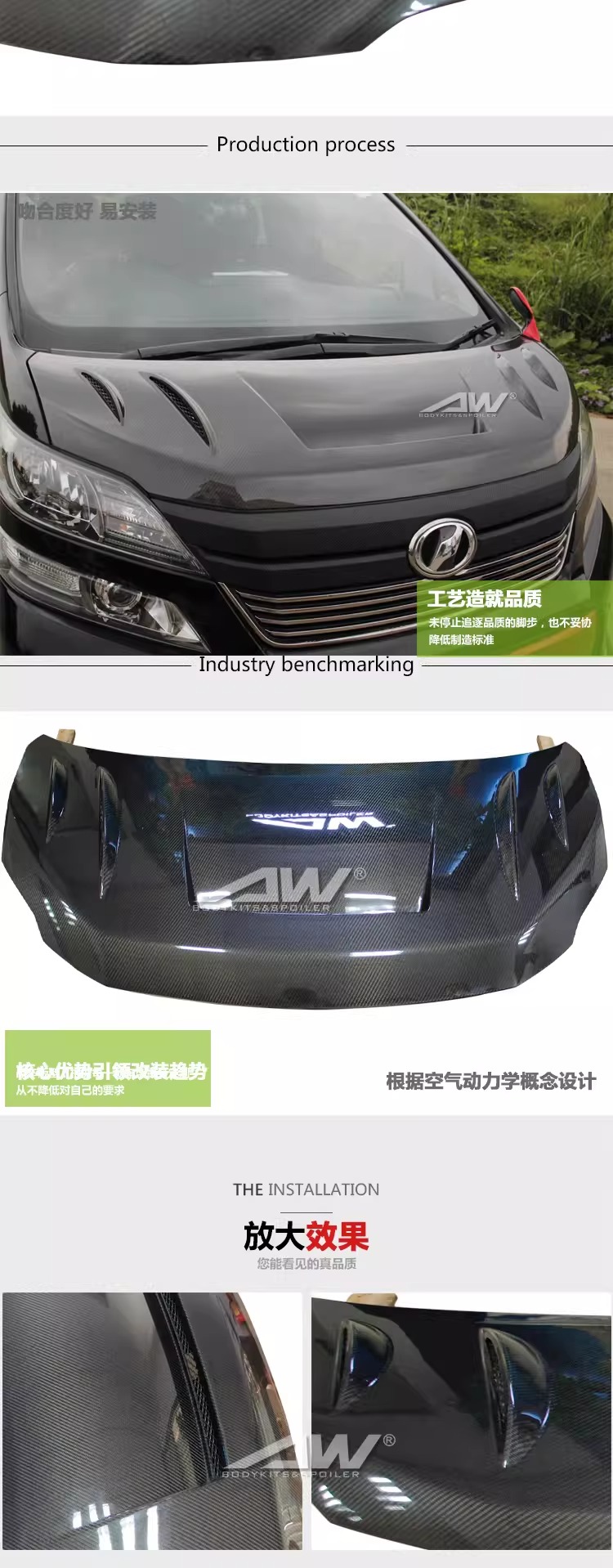 丰田Vellfire碳纤维机盖 阿尔法碳纤维头盖 VF改装机盖
