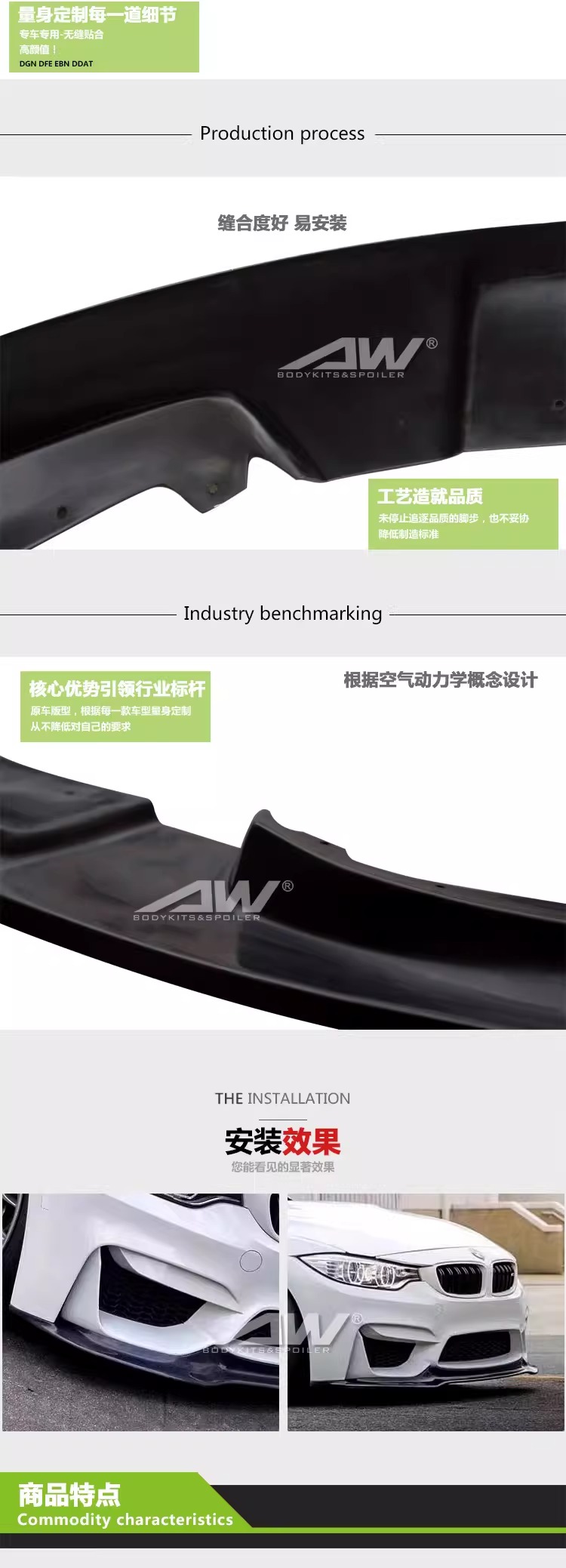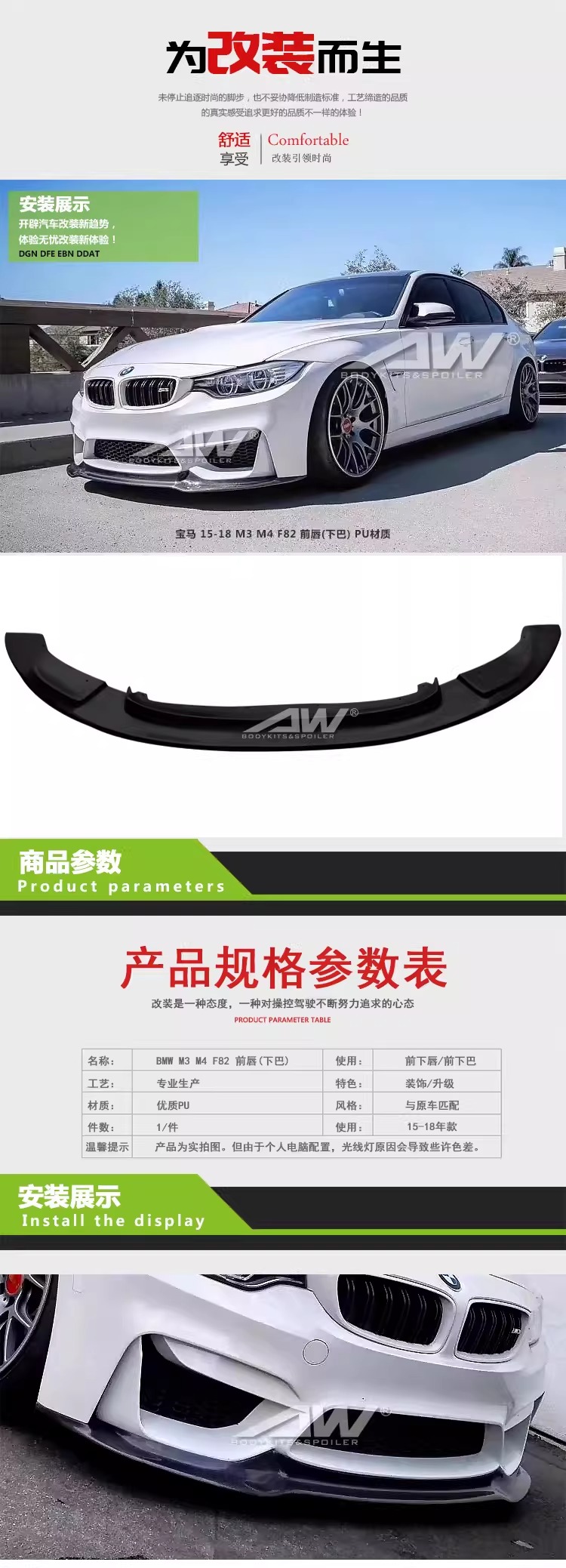 BMW宝马 M3 M4改装PU前下巴 F80 F82小包围 宝马M3M4前唇