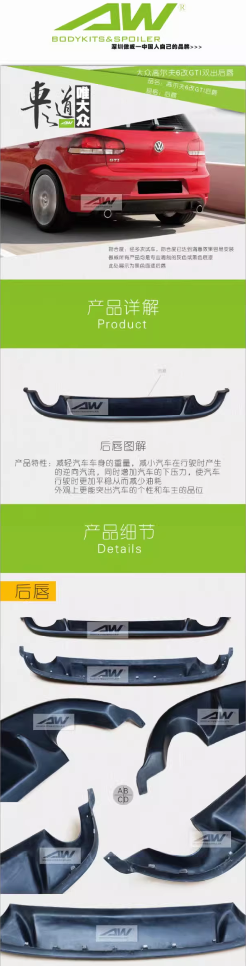 GOLF6高尔夫6改装包围后唇 后下巴 高6改GTI PU后扰流板