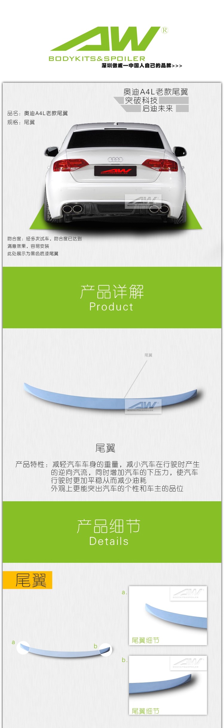 09款奥迪A4L B8 PU汽车改装尾翼 AW Car Modified Rear Wing For Audi 09 A