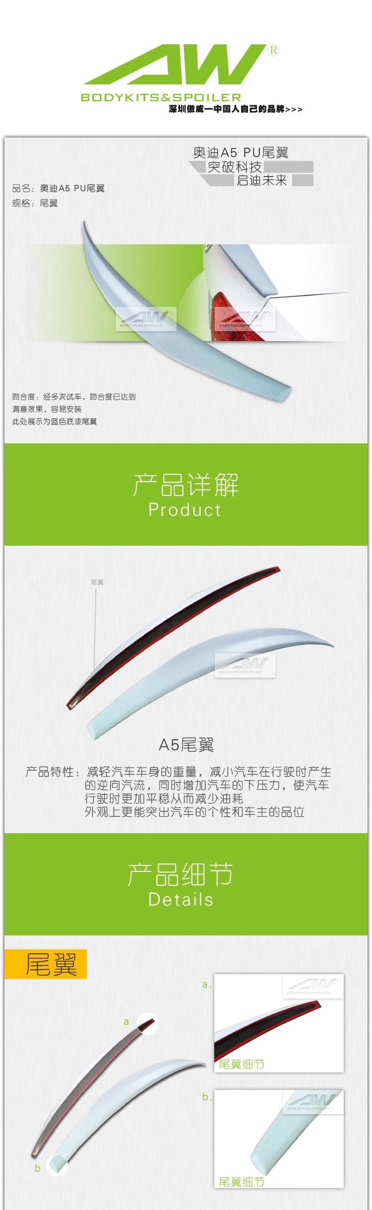 奥迪A5PU改装尾翼 AW Car Modified Rear Wing For Audi A5