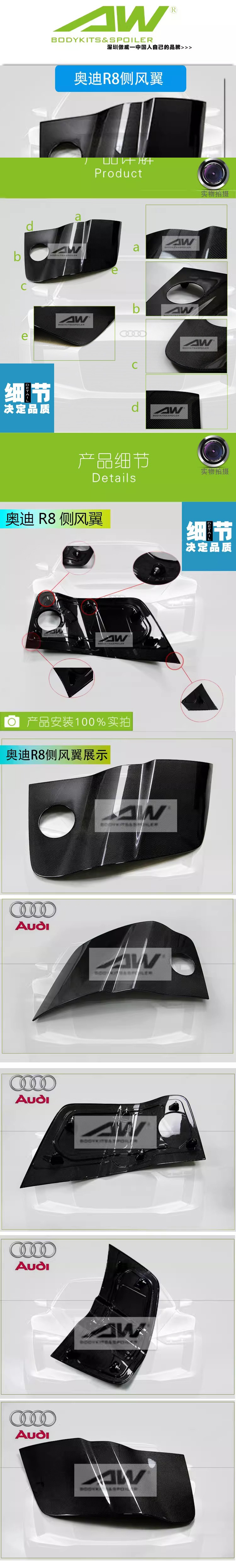 AUDI奥迪R8改装 R8碳纤维后侧门板 AW bodykits Car Retrofit High Quality
