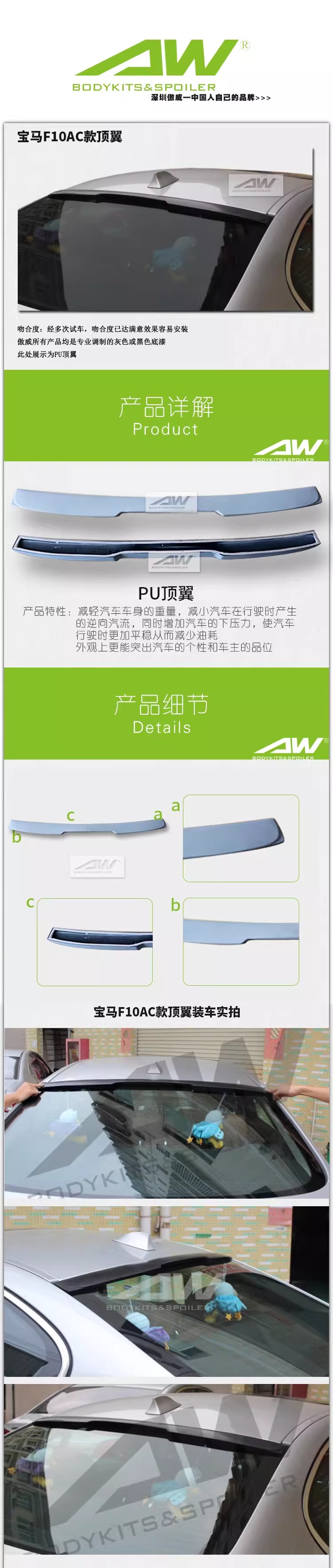 宝马5系顶翼 520 530 550 F10 F18 PU顶翼 AW Car Modified Rear Wing Fo
