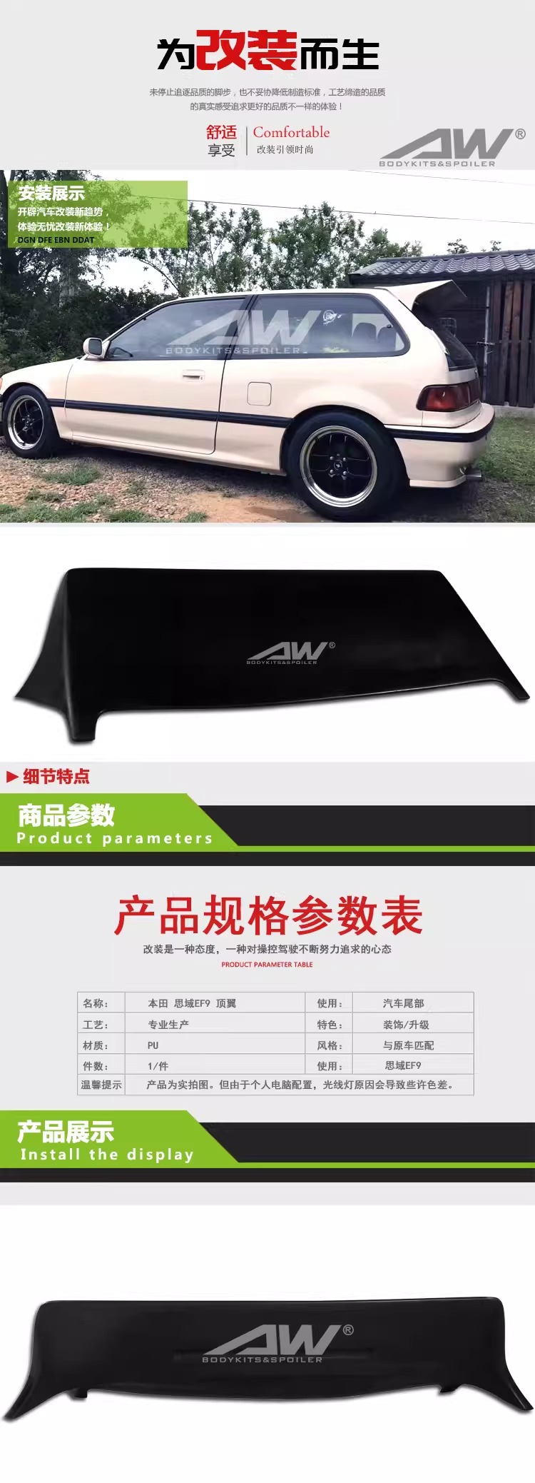 思域EF9改装尾翼 思域4代改装尾翼 思域EF9改装PU尾翼顶翼