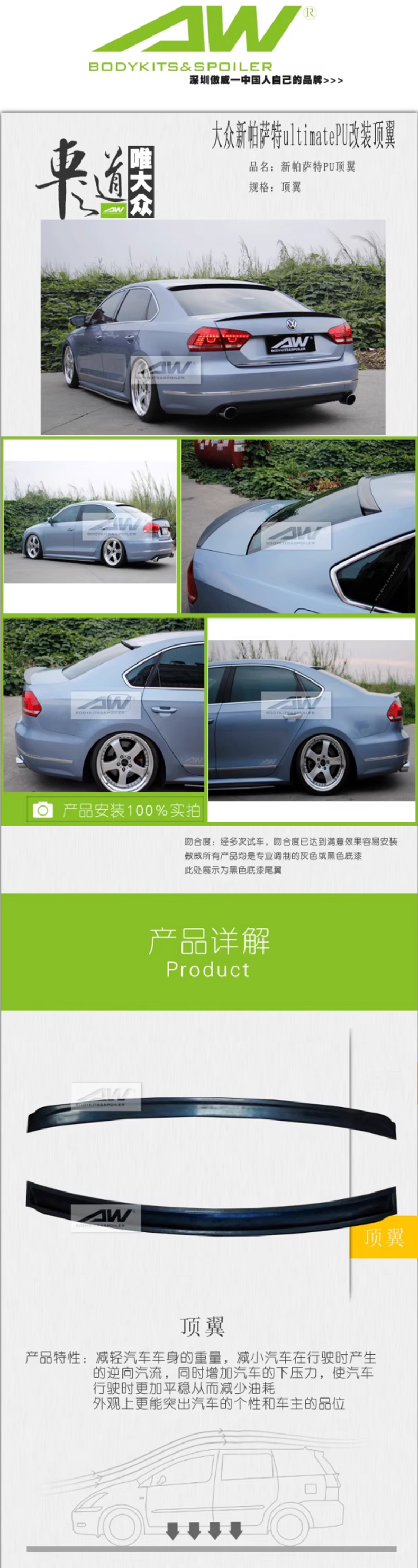 12-15大众新帕萨特顶翼 大众帕萨特改装ultimate专用PU顶翼尾翼