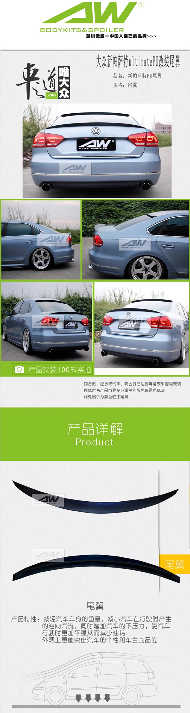 12-15大众新帕萨特尾翼 大众帕萨特改装ultimate专用卧式压尾翼