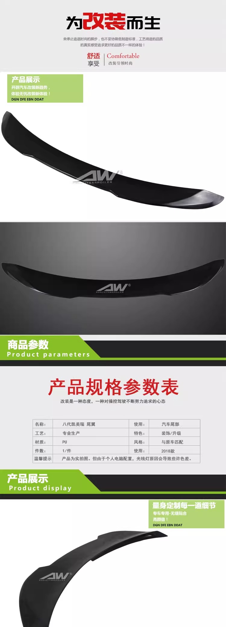 丰田2018款新凯美瑞8代改装尾翼18款凯美瑞汽车改装尾翼免打孔