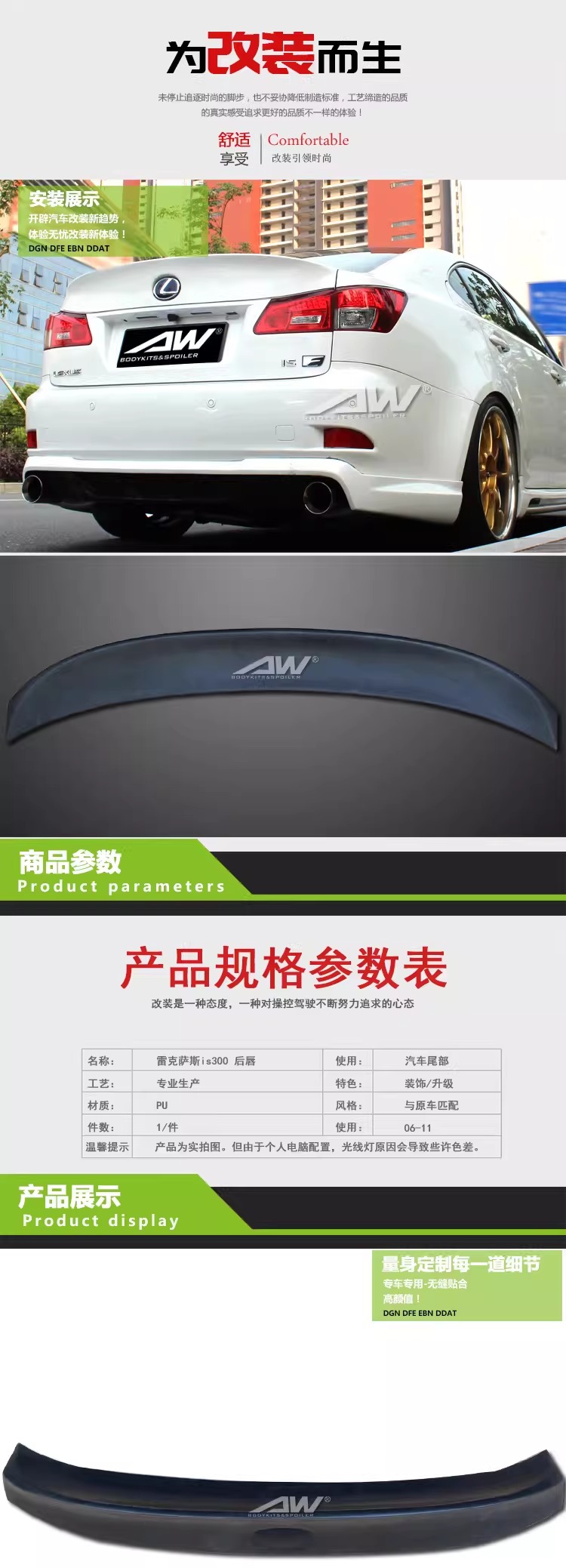 06-11年雷克萨斯IS250尾翼雷克萨斯IS300PU压尾翼雷克萨斯大压翼