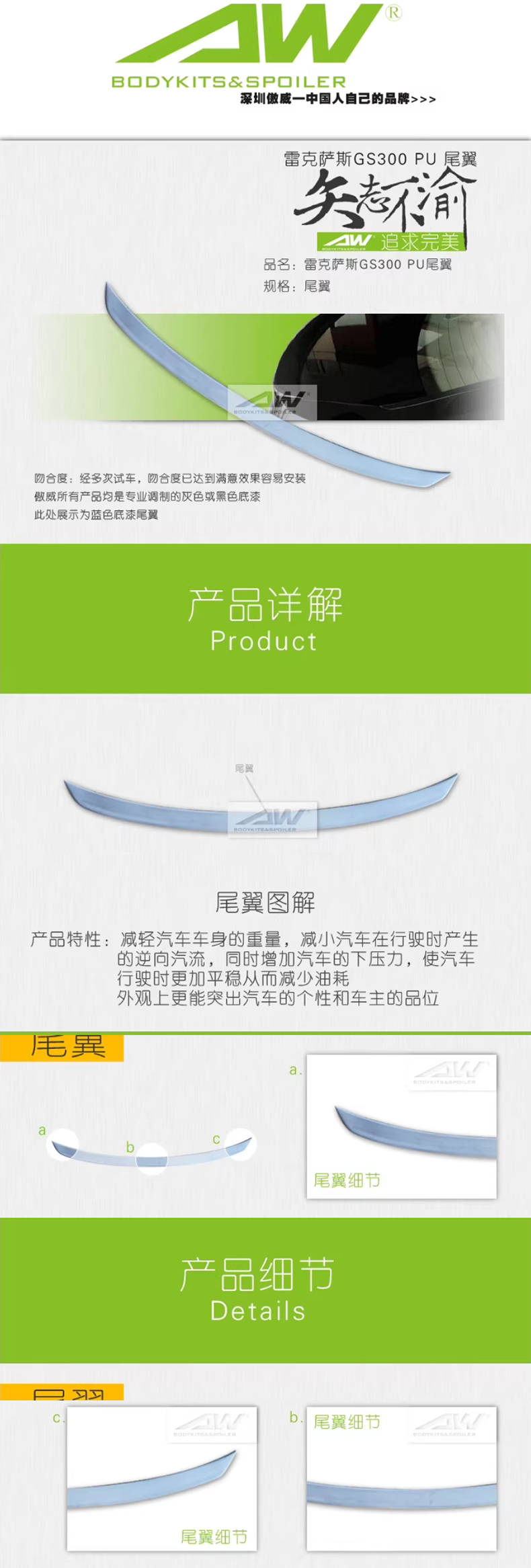 雷克萨斯改装 gs300尾翼PU压尾翼GS尾翼GS300卧式压尾翼