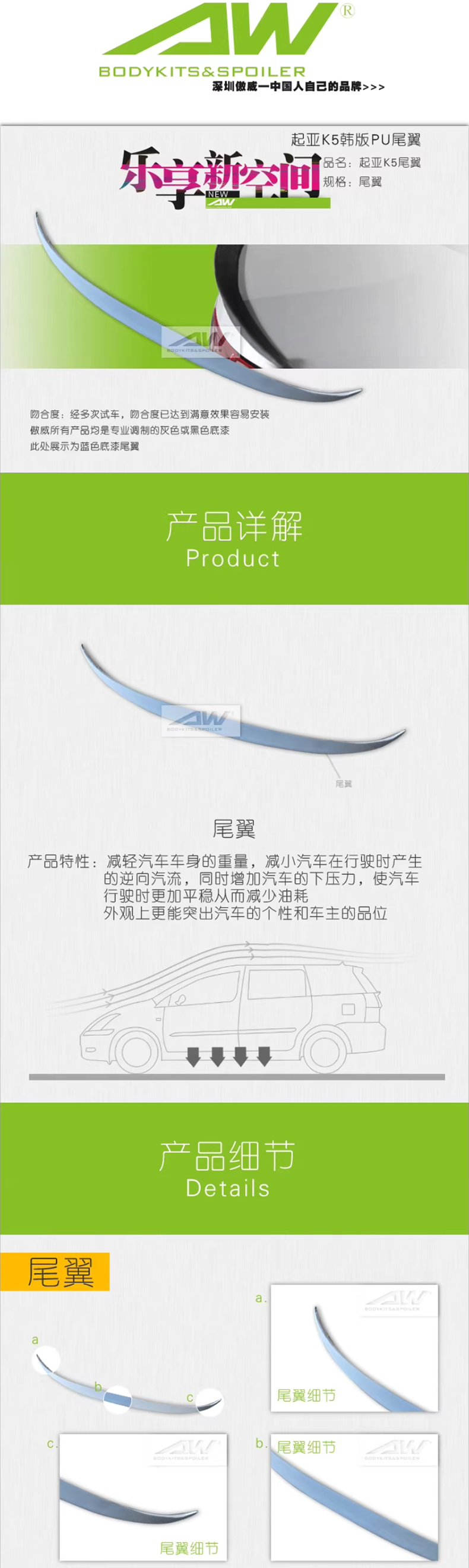 起亚K5 改装 韩版PU尾翼 起亚K5尾翼起亚尾翼 K5PU定风翼