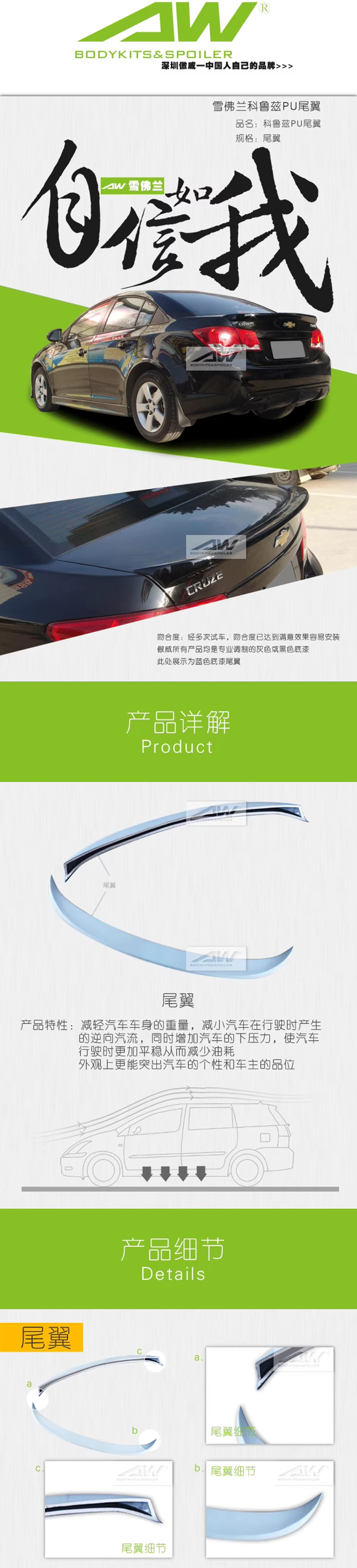 雪佛兰科鲁兹改装包围尾翼卧压式PU尾翼3M胶粘贴免打孔
