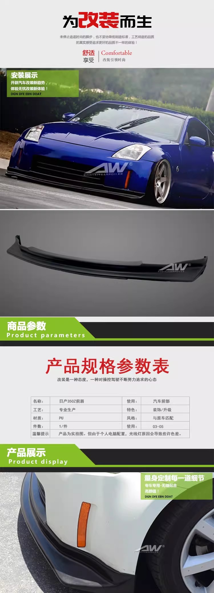 Nissan尼桑350Z 前唇 前铲 前下巴 尼桑350Z PU材质改装包围03-05