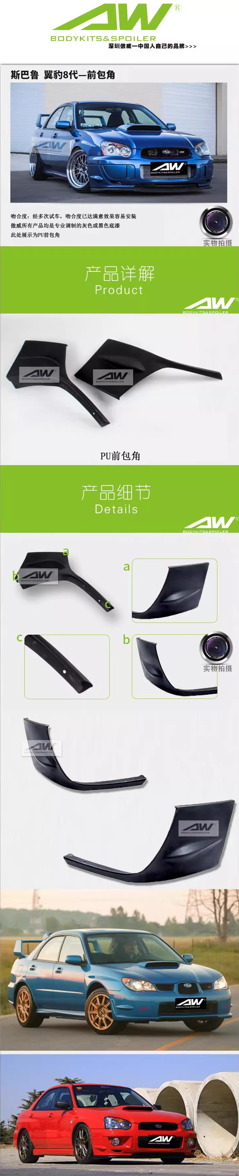 斯巴鲁翼豹8代PU前包角_翼豹八代STI款前包角_翼豹八代改装包围