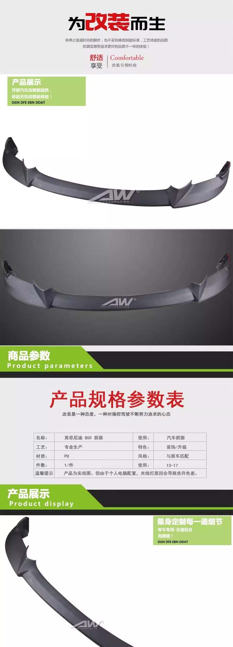 英菲尼迪Q50改装前唇PU前唇前铲铲前下巴英菲尼迪Q50改装包围