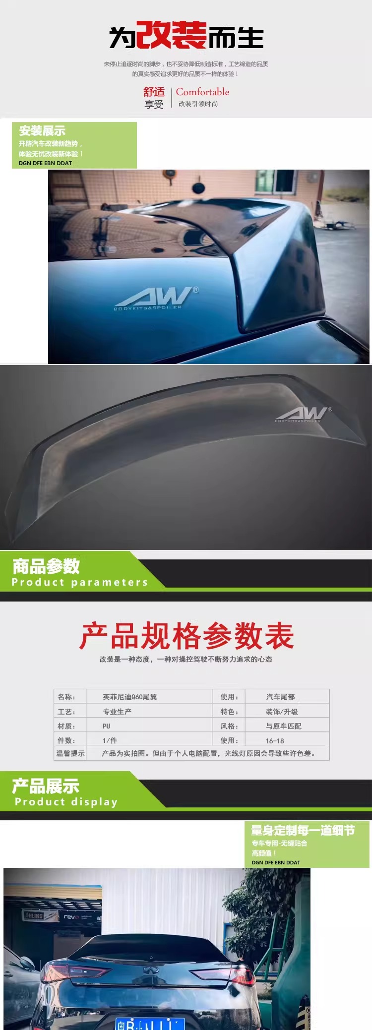 英菲尼迪Q60_Q60S改装尾翼 英菲尼迪Q60尾翼 3m胶粘贴免打孔